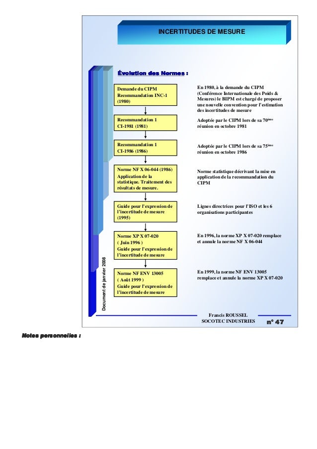 Ce guide établit les règles générales pour l évaluation et l expression de l incertitude pour les mesurages qui peuvent être effectués à des niveaux variés d exactitude et dans de nombreux domaines de la boutique du commerçant à la. Le guide iso cei 98 3 2008 est une nouvelle édition du guide pour l expression de l incertitude de mesure gum 1995 avec des corrections mineures. L incertitude de mesure permet aux utilisateurs d une valeur mesurée de faire des comparaisons dans le cadre de l évaluation de la conformité pour déterminer la probabilité fondée sur la mesure de prendre une décision incorrecte et de gérer les risques qui en découlent. De très nombreux exemples de phrases traduites contenant guide pour l expression de l incertitude de mesure dictionnaire anglais français et moteur de recherche de traductions anglaises.